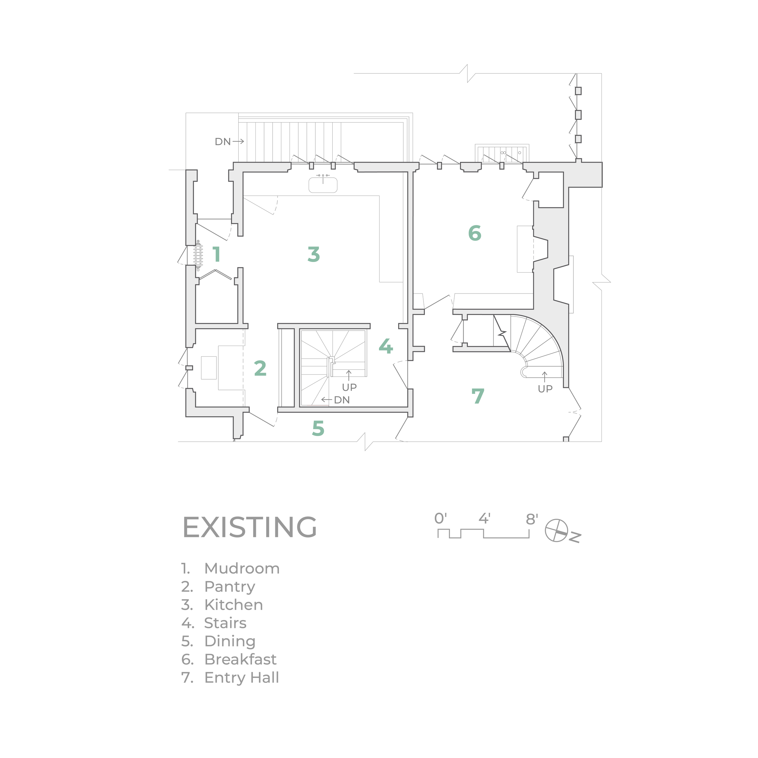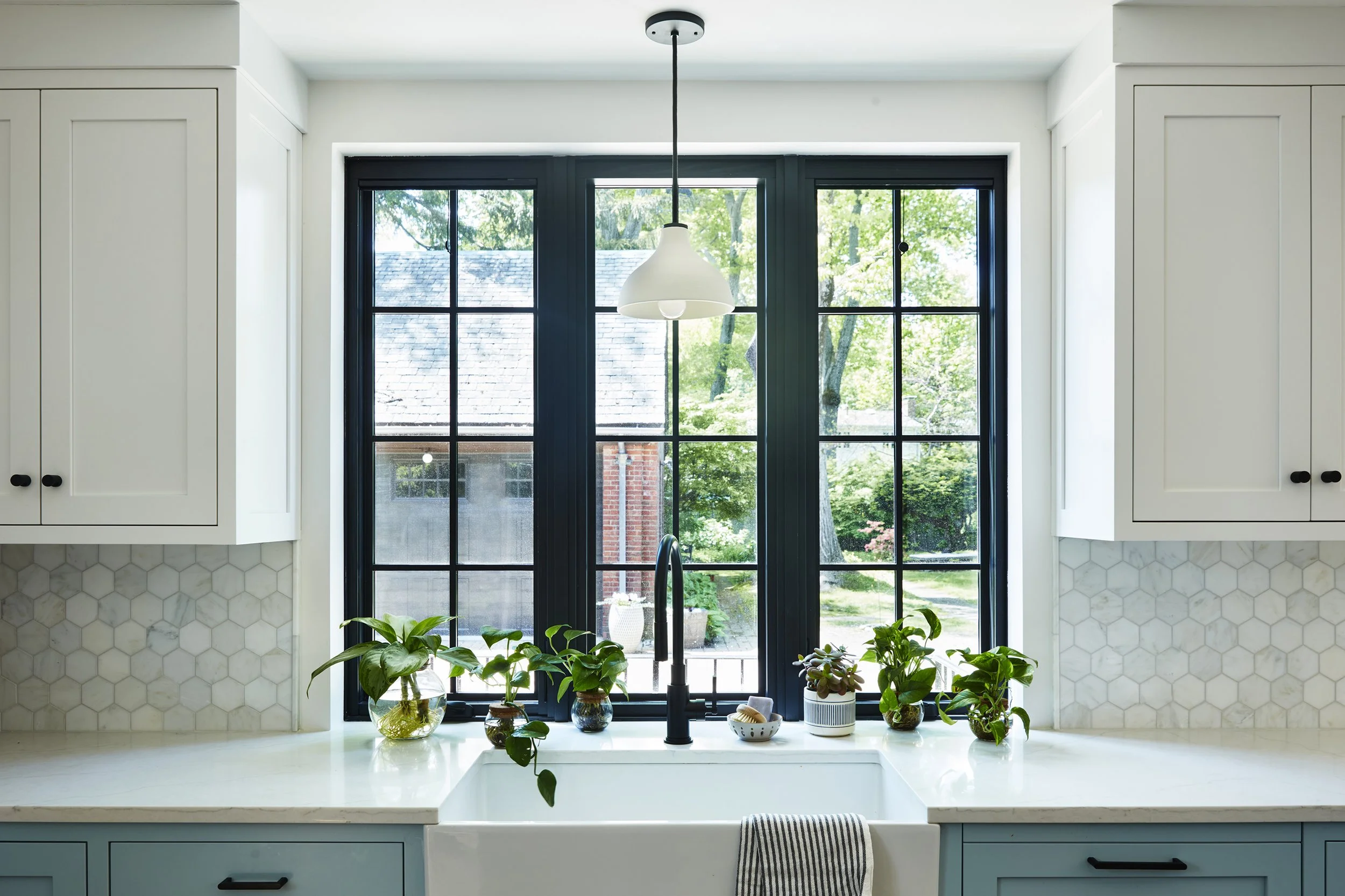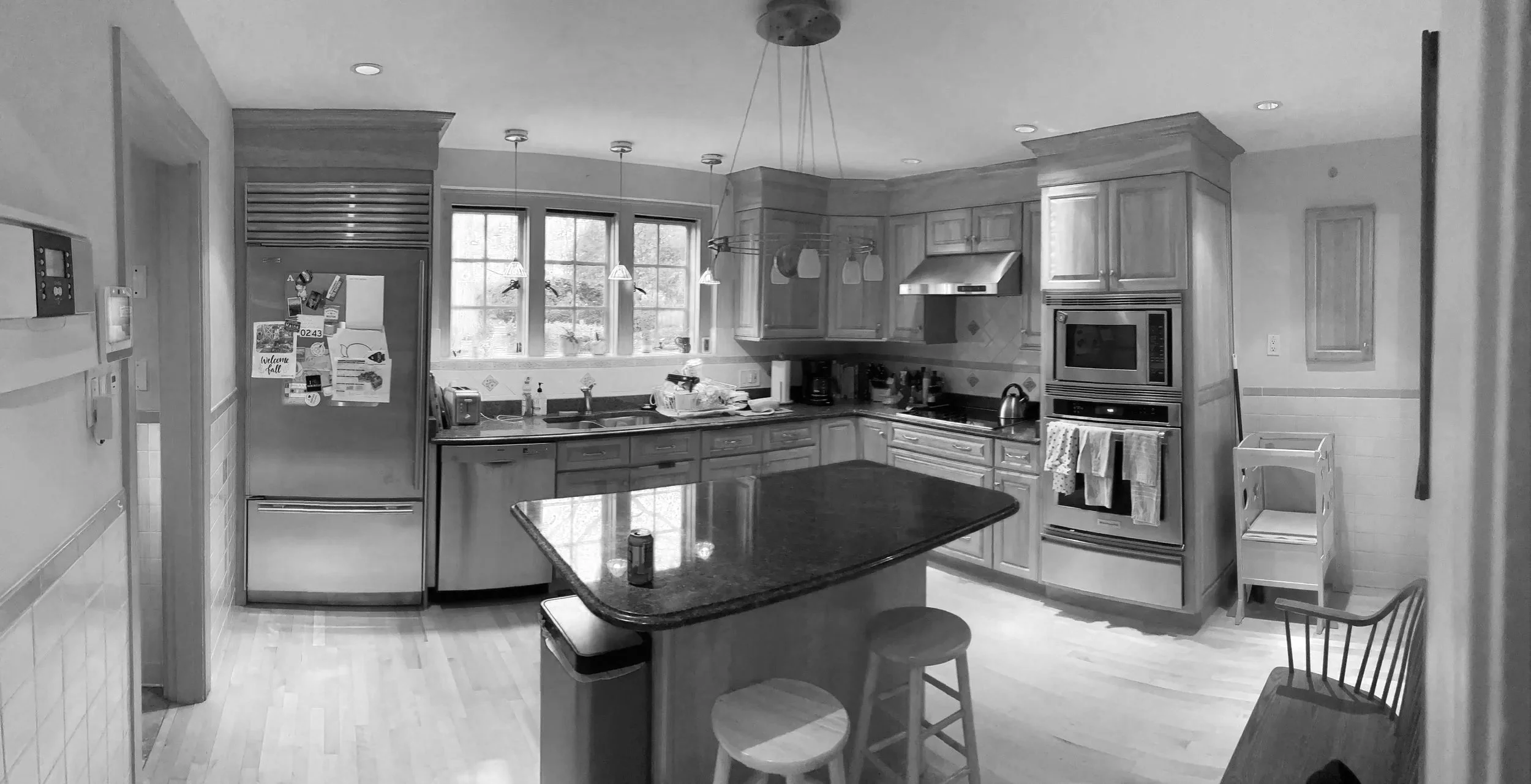 This 1929 Tudor style brick house was bought in 2022 by a young family looking to raise their two children in the city while enjoying the breadth of nature available in the Jamaica Plain neighborhood of Boston. While spacious, the house rigidly separated traditional work spaces like the kitchen and pantry from spaces of leisure, an arrangement that was at odds with this young family’s lifestyle. This renovation created a new sunny eat-in kitchen to serve as a nucleus for family activities while maximizing connections to the landscape oasis behind the home.