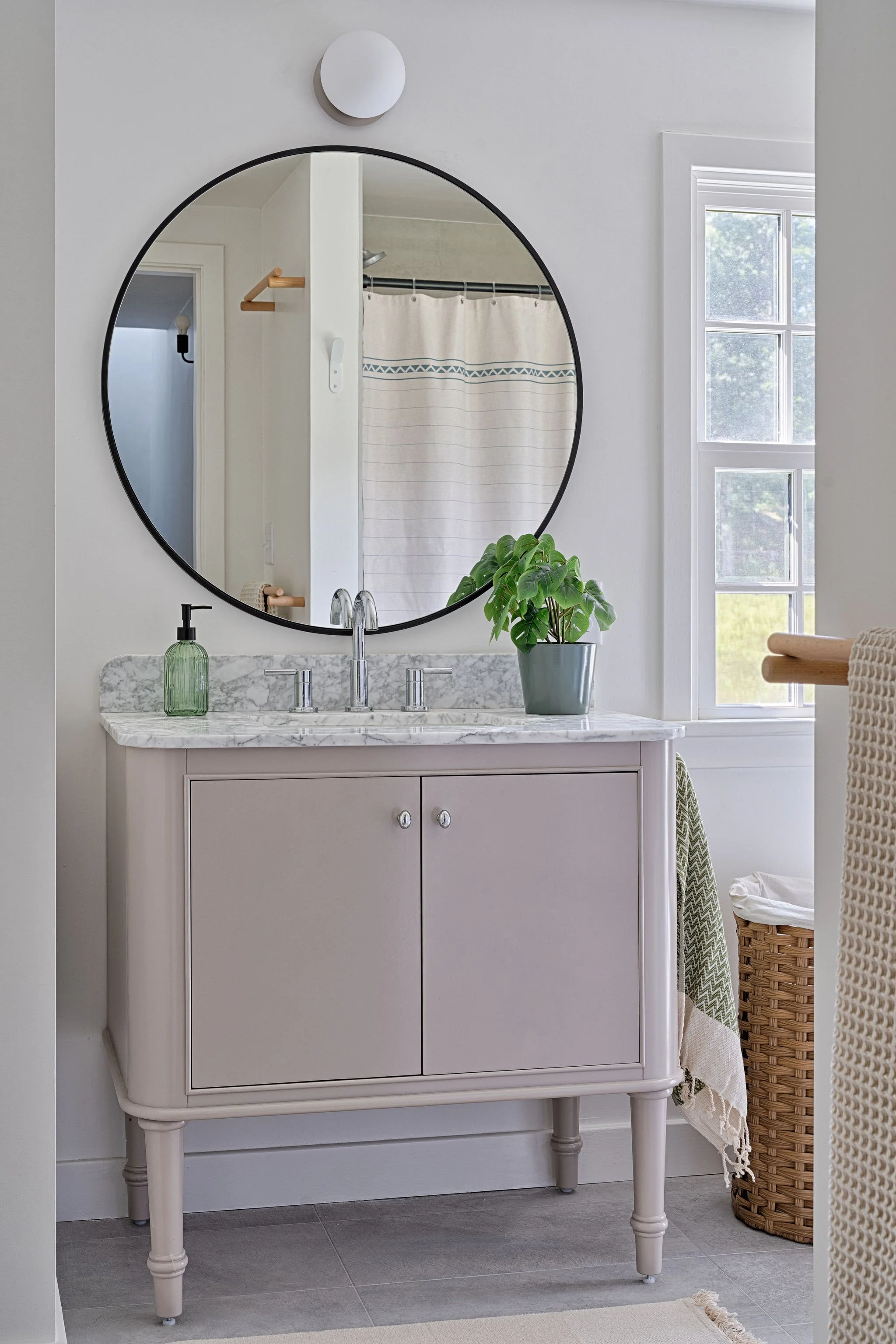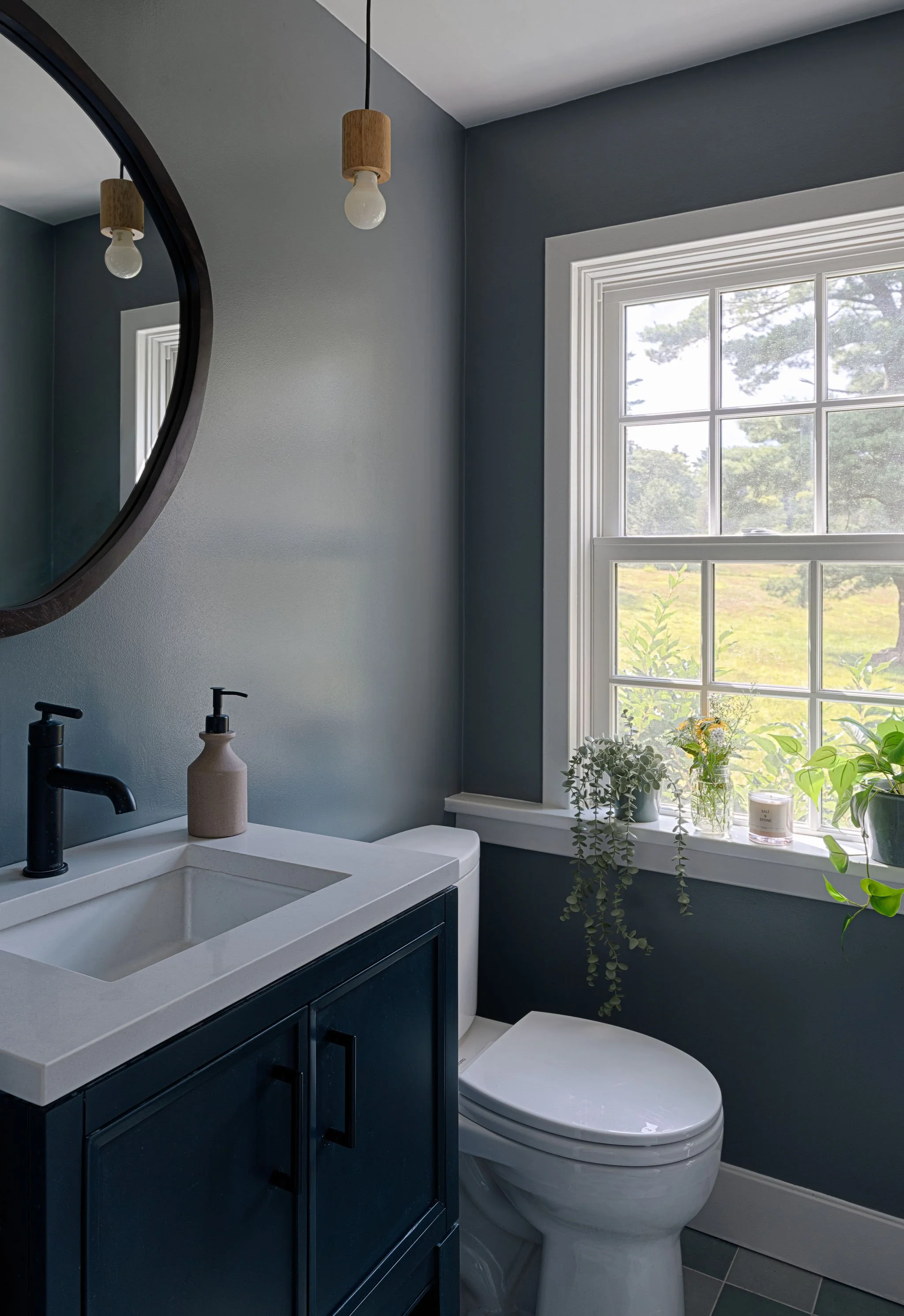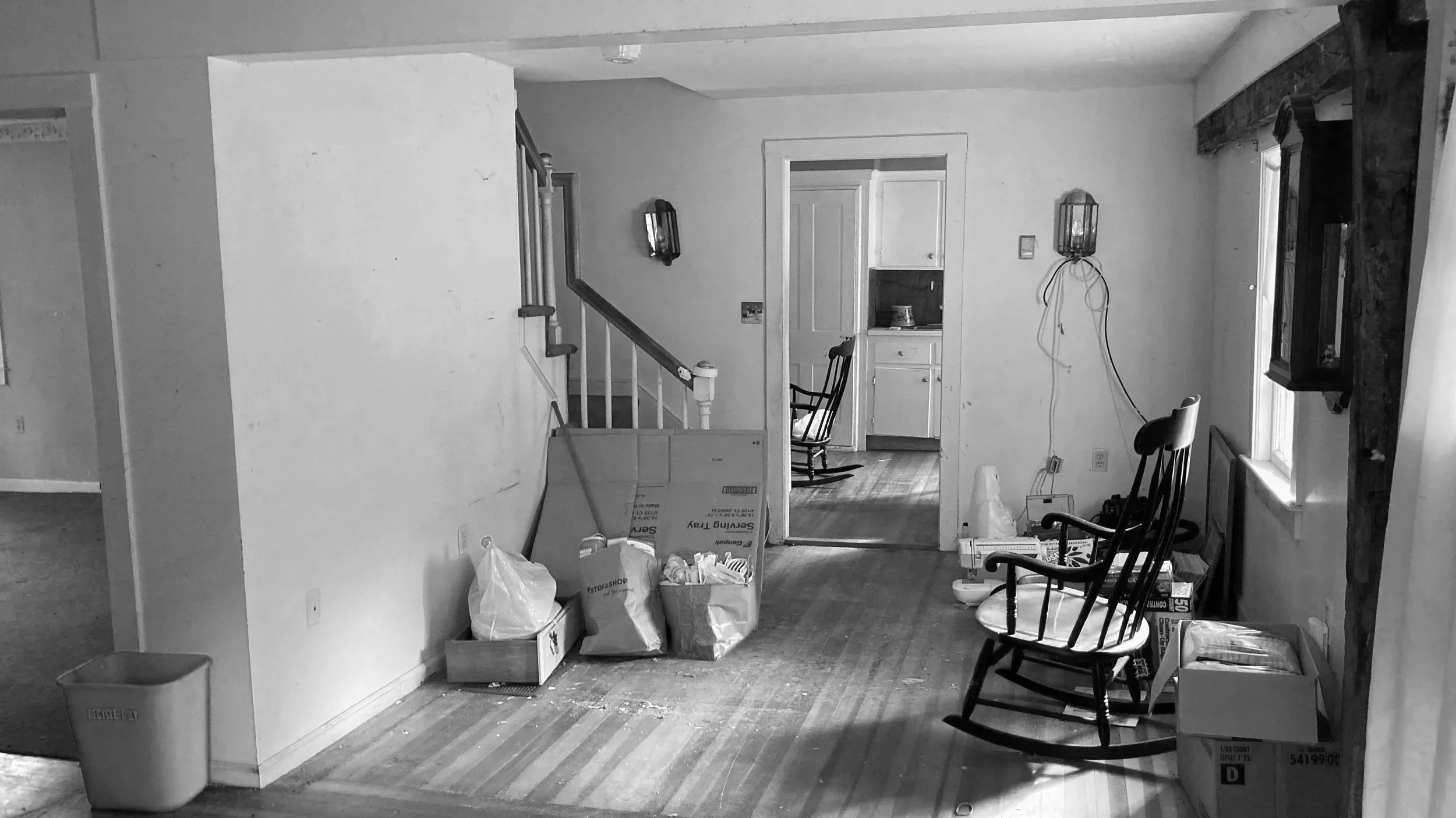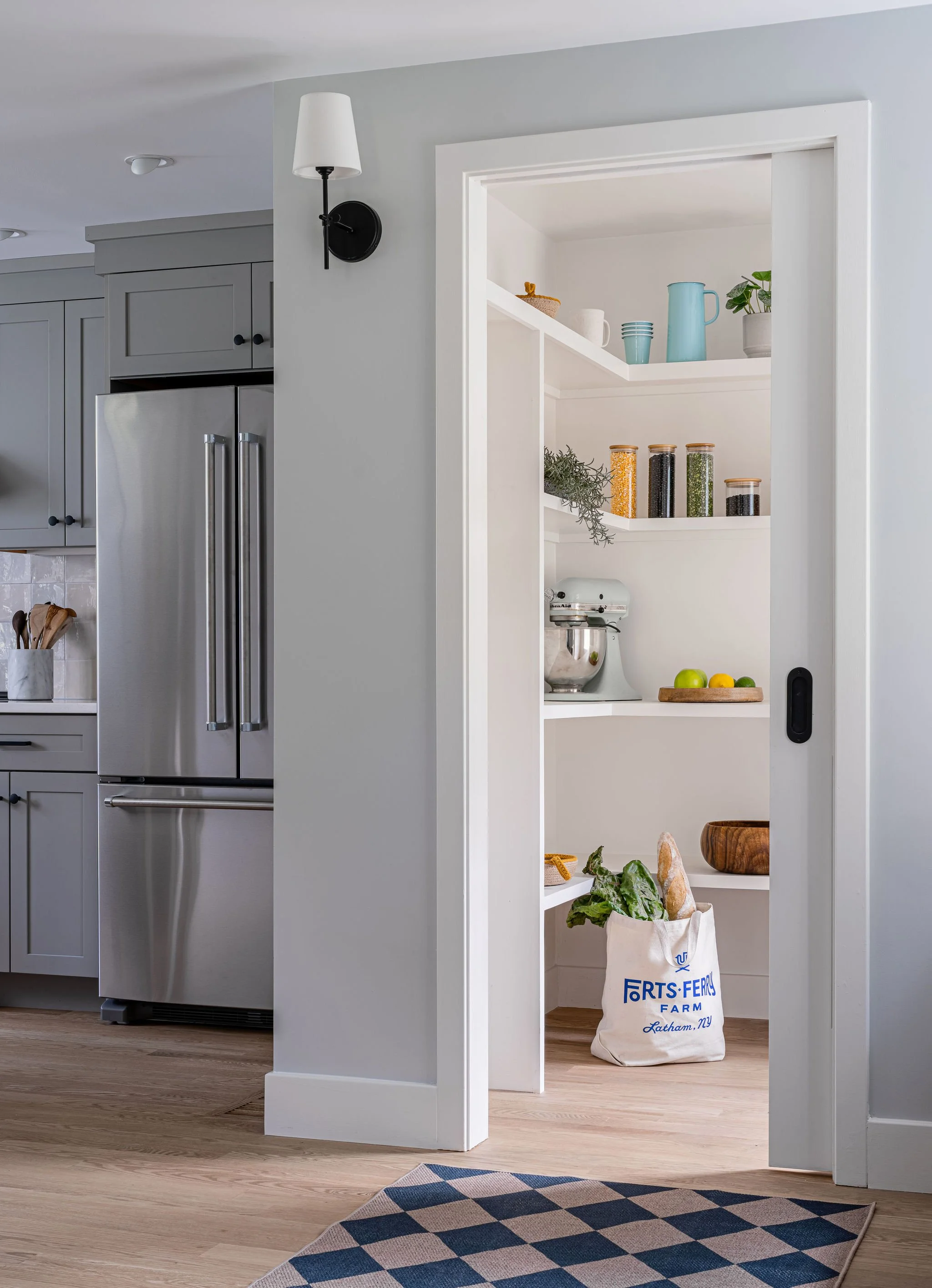With this renovation of a 1700’s farmhouse on a fourth-generation family farm, we opened the ground floor to create a more spacious feel and added windows to the rear to make the most of the bucolic farm view. Traces of the historic timber framing were exposed while we comprehensively updated the exterior envelope to meet current energy standards and provide larger, operable windows. The existing entry door oddly entered directly into the living space, so by shifting this door over we completed the living room and created a proper entry space while also giving order to the front façade.