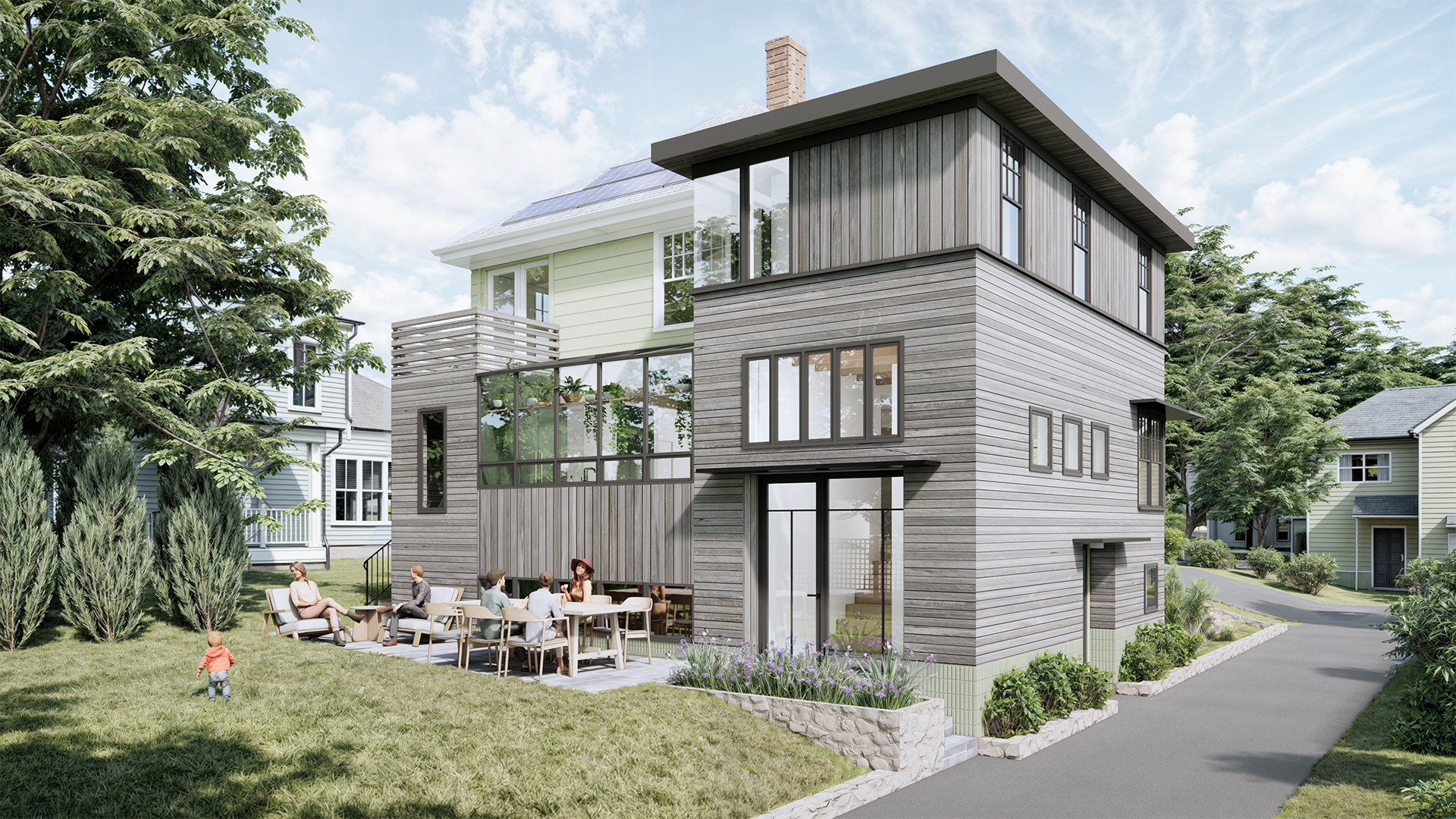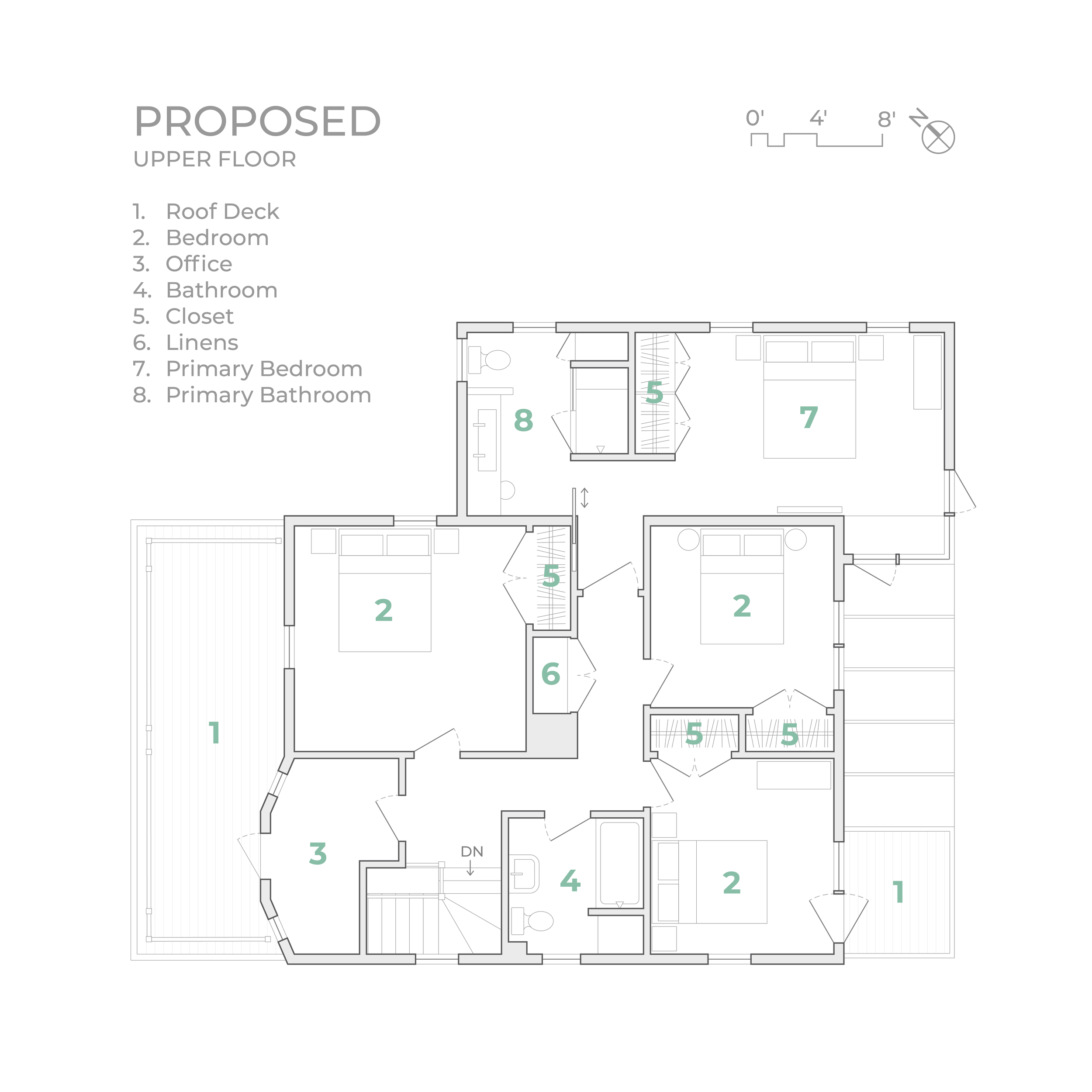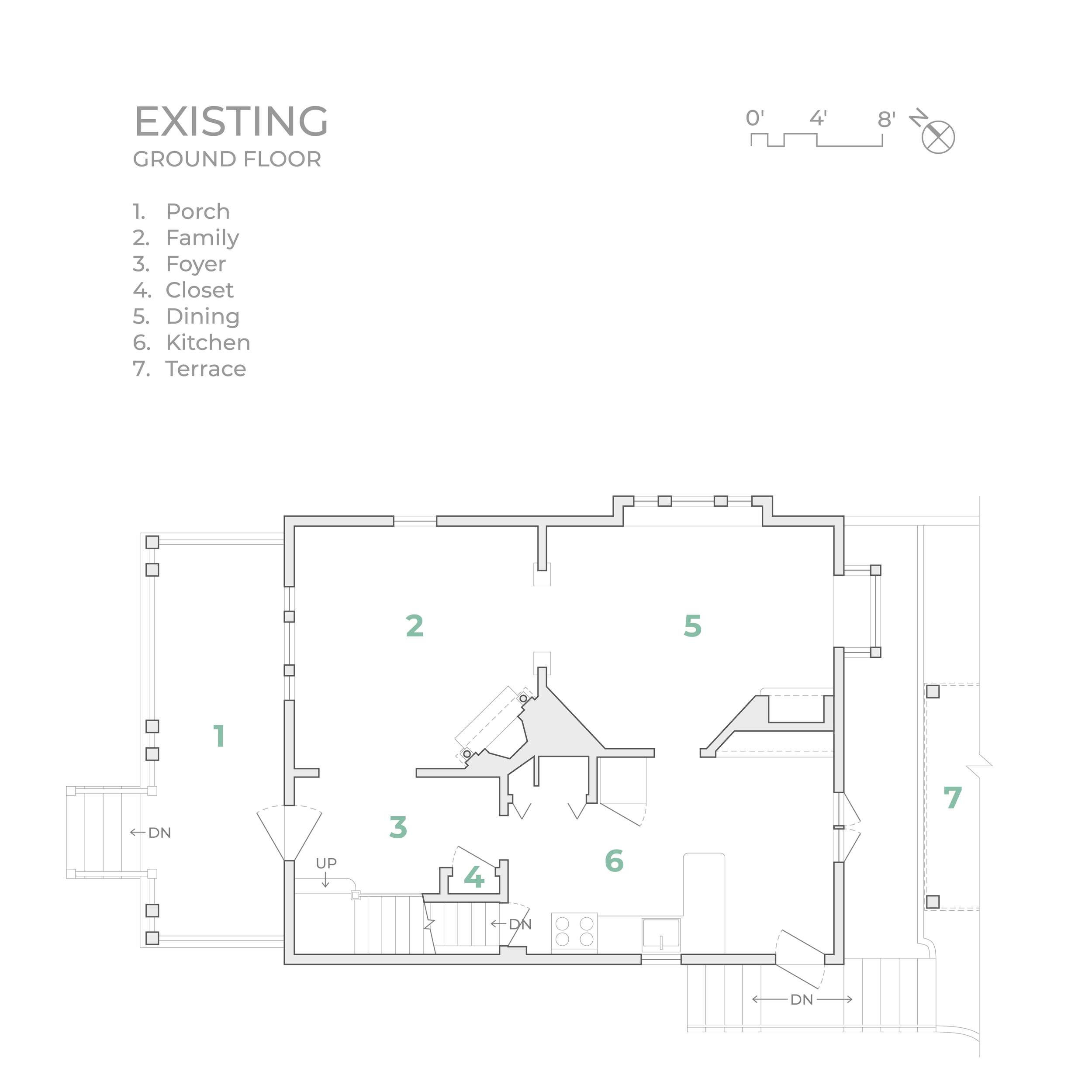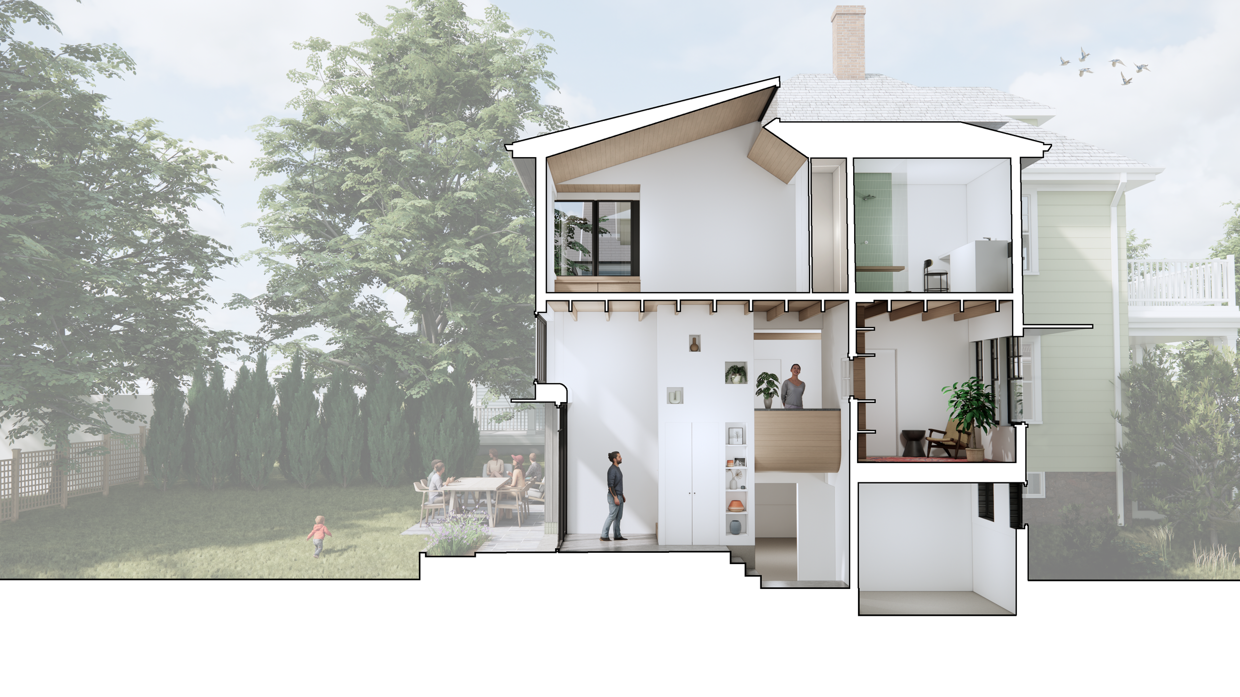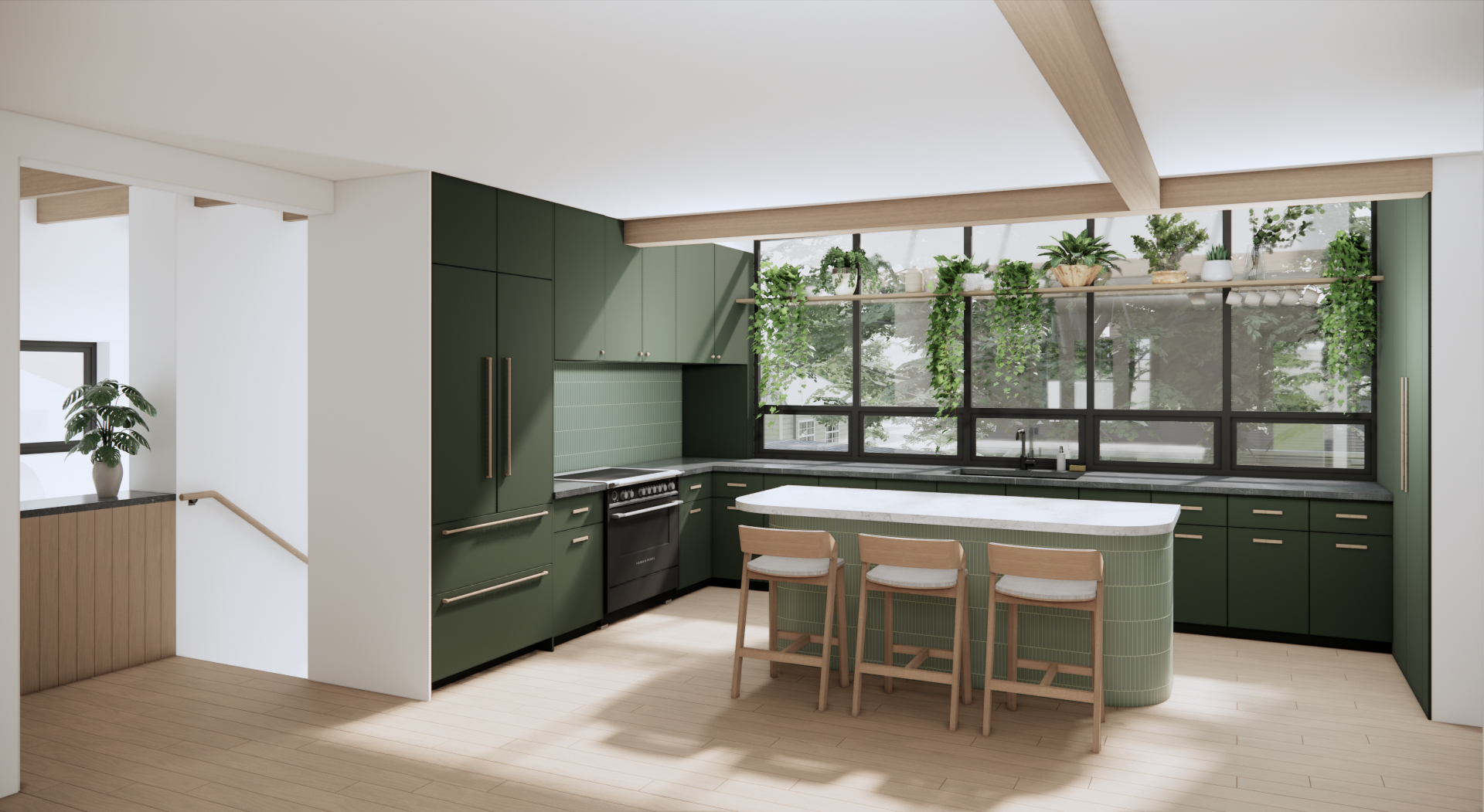 Designed for homeowners with a love for pottery and plants, this addition is laden with opportunities for the display of sculpture and broad expanses of glass to cultivate indoor greenery. A new double-height mudroom helps gracefully direct traffic between interior and exterior spaces while a glass roof over the kitchen addition gives the effect of a greenhouse. The addition is capped with a new, cozy primary suite perched amidst the trees.